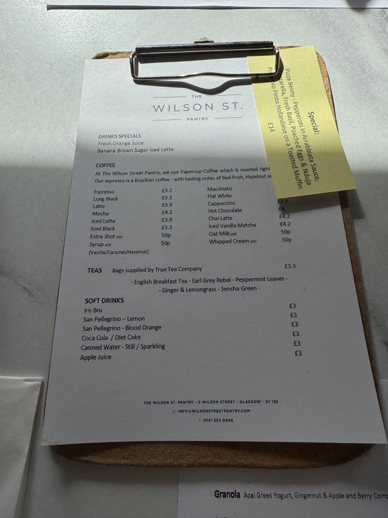 Luckily, a short walk away, Wilson St. Pantry waited on a quaint side street. Their fresh, nutritious brunch options packed that post show week calorie punch that coffee and a croissant always lacks. Plus, I got to try local Glasgow bites!
